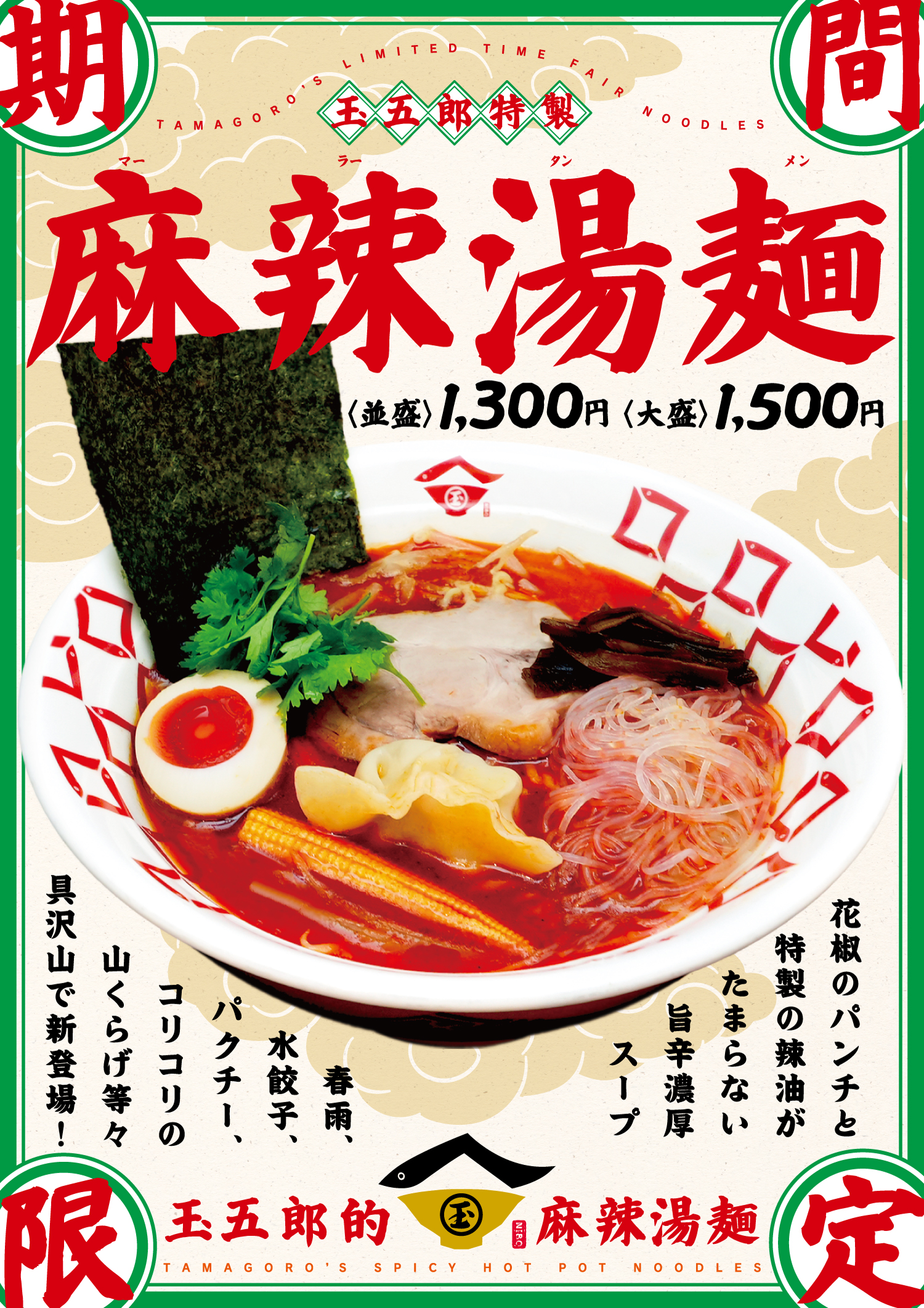 期間限定「玉五郎の麻辣湯麺」始まりました!