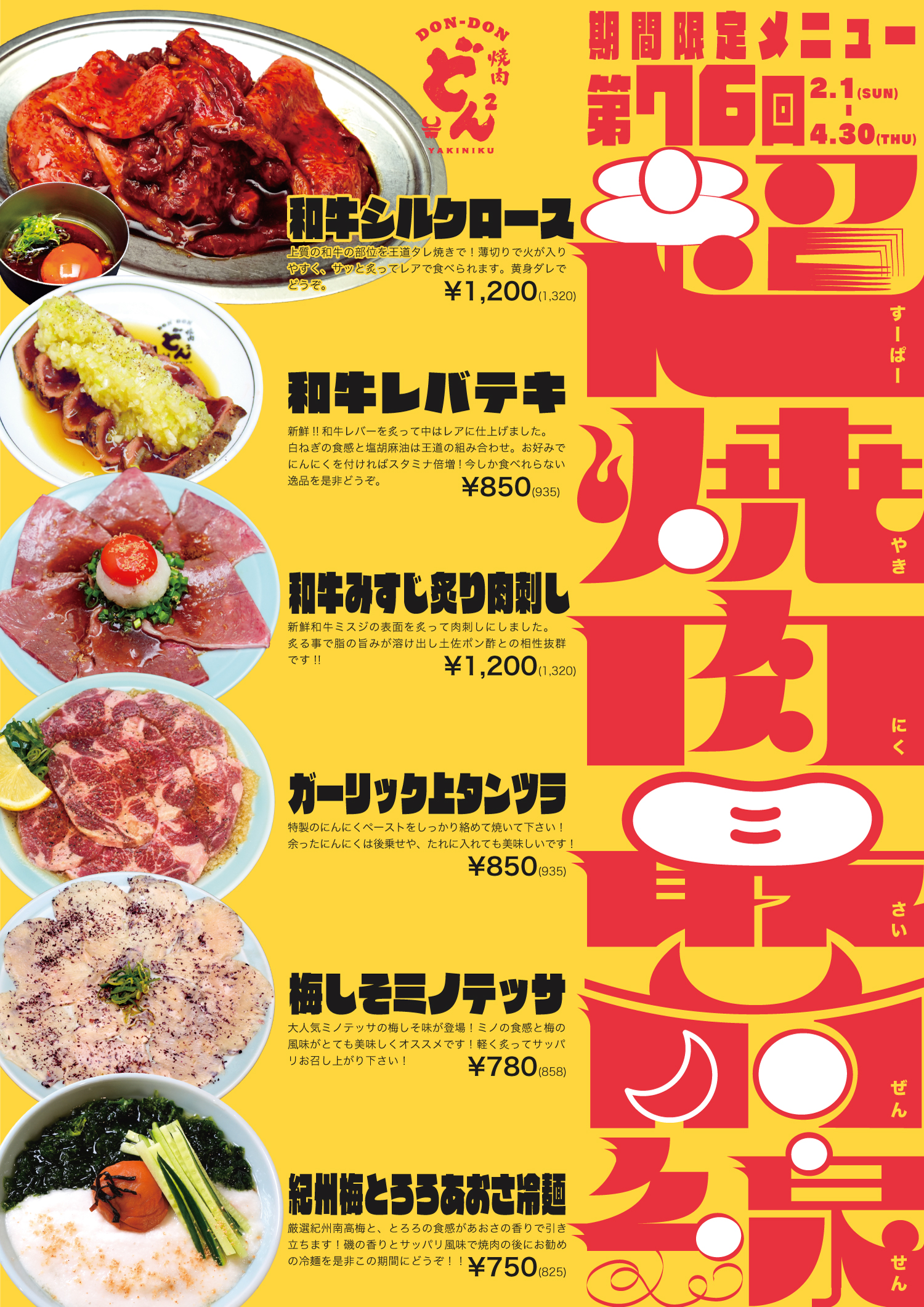 焼肉どんどん 2月からの期間限定メニュー